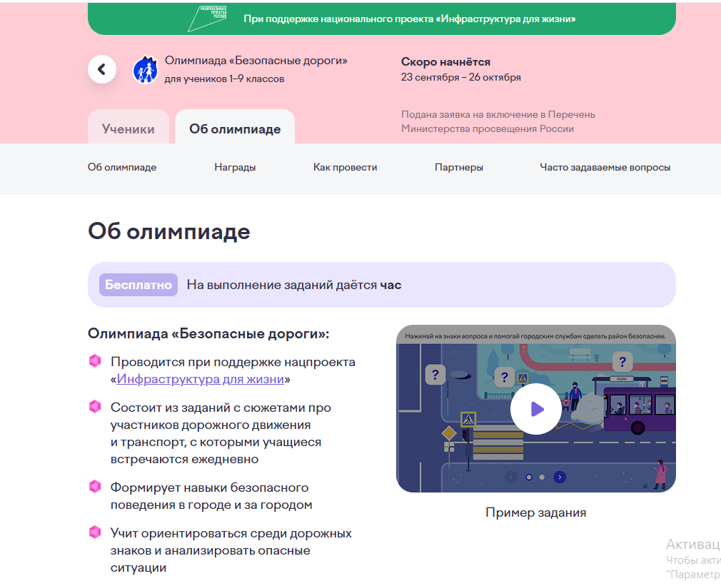 Всероссийская онлайн-олимпиада для школьников 1-9 классов «Безопасные дороги»